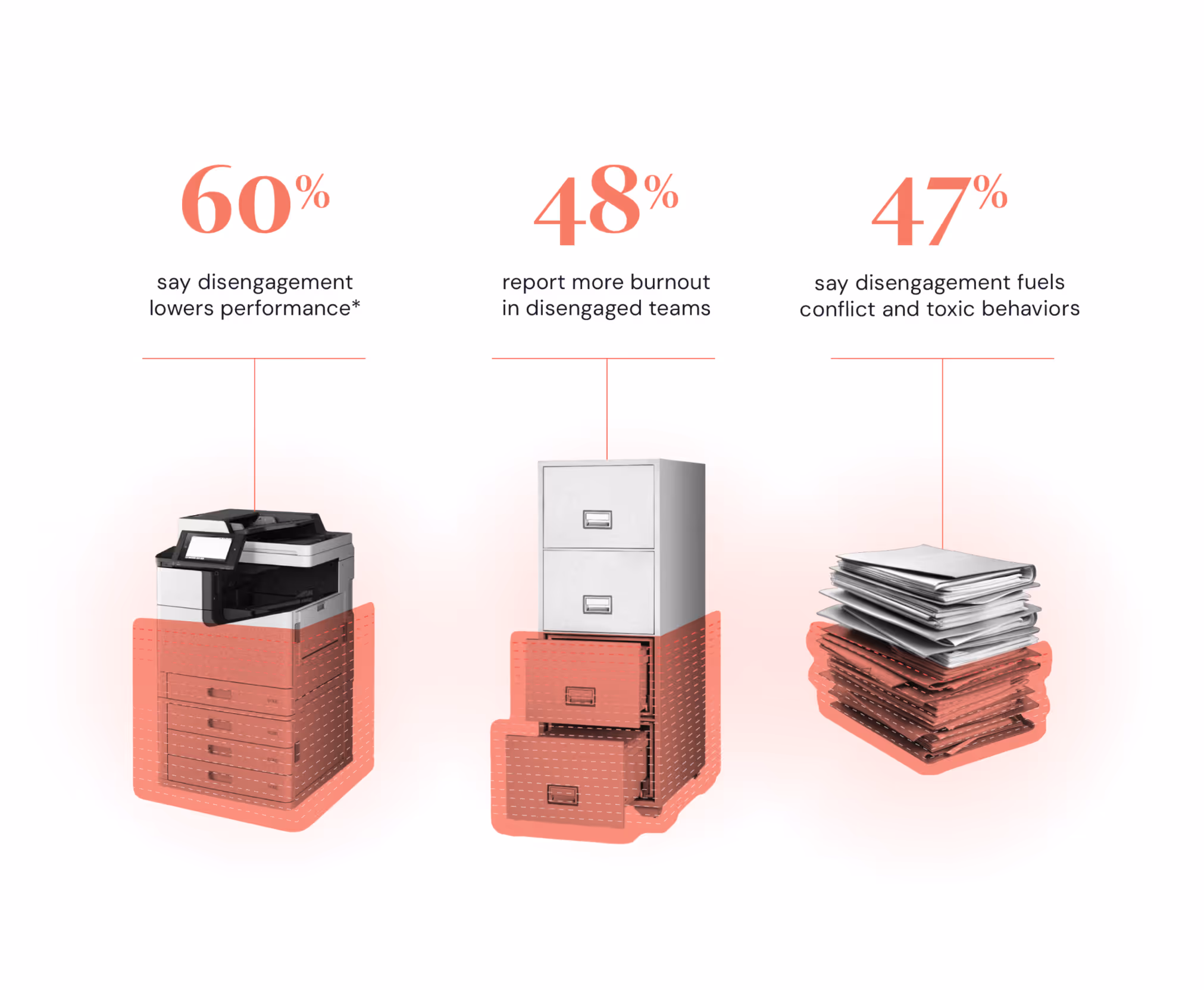 When morale drops, the effects show up fast. Six in ten HR leaders and managers say disengagement directly cuts performance — and the financial toll is staggering.