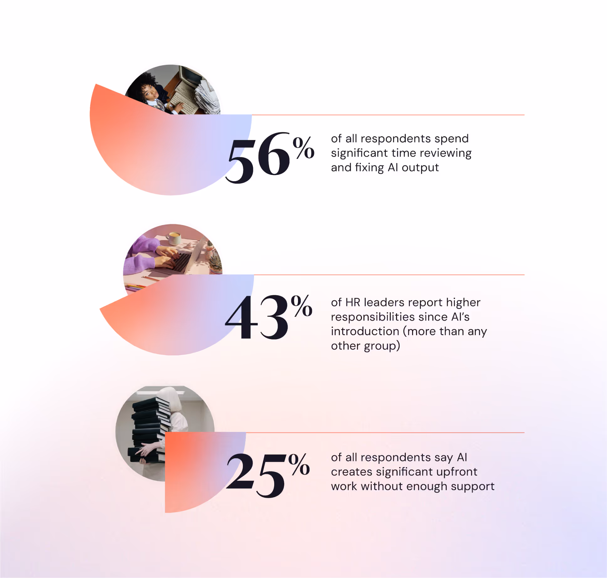 HR reports the steepest rise in responsibilities since introducing AI, and more than half of employees across roles say they lose time to reviewing and correcting AI output.