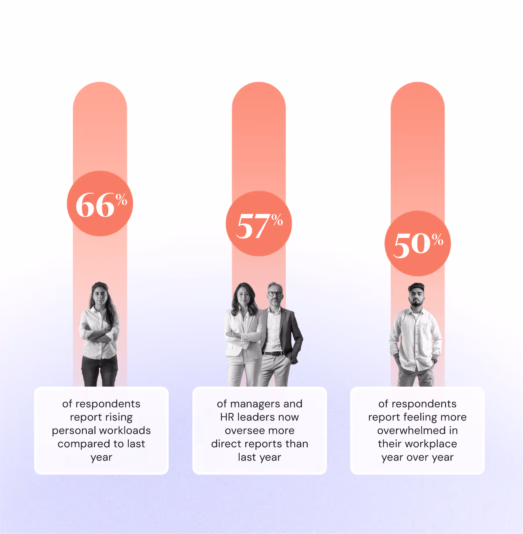 Nearly two-thirds of employees say their workload has grown over the past year. Half report feeling more overwhelmed, and managers now oversee larger teams as hiring stalls.