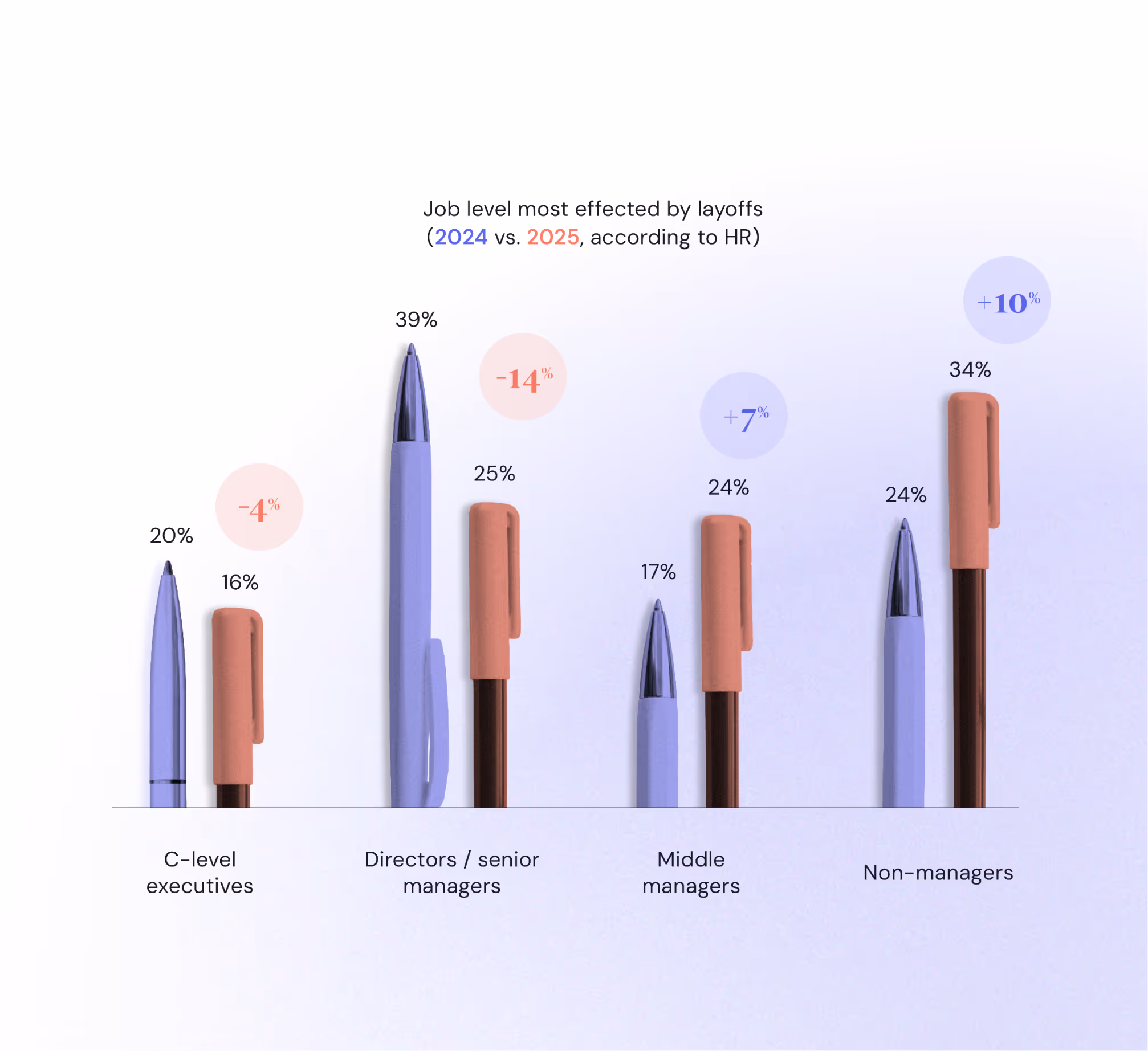 AI is also impacting layoff decisions. Last year, cuts were concentrated at the top. This year, they’ve moved down into middle management and especially junior roles.