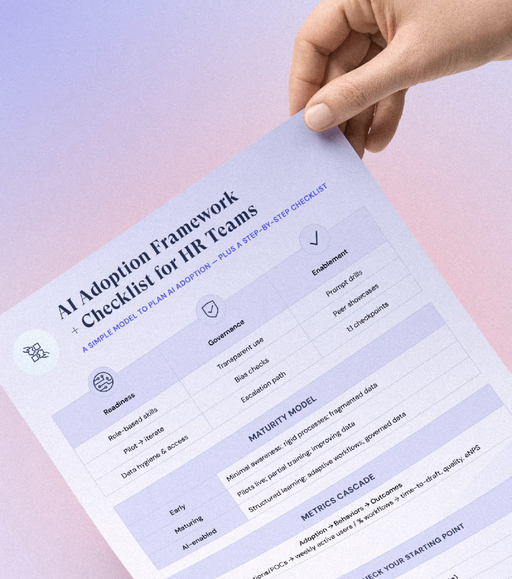 - A 3-pillar framework: readiness, governance, enablement