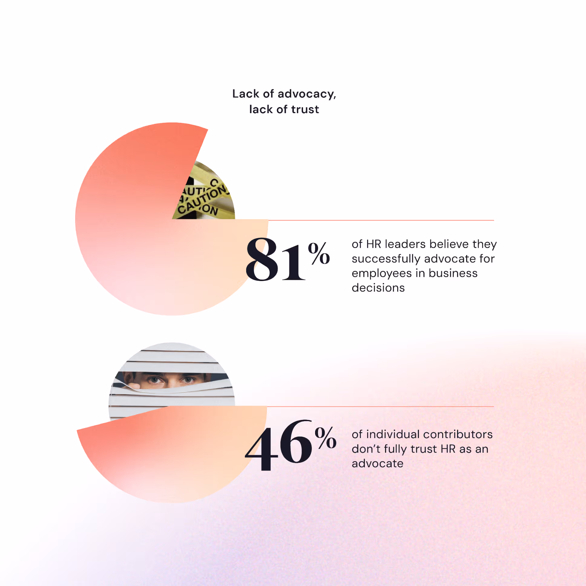 Most HR leaders believe they advocate for employees in critical decisions. Employees are less certain: fewer than half fully trust HR to play that role, with many neutral or unconvinced.